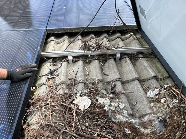 Meer dan 800 panelen afgeschermd tegen het nestelen van vogels.
