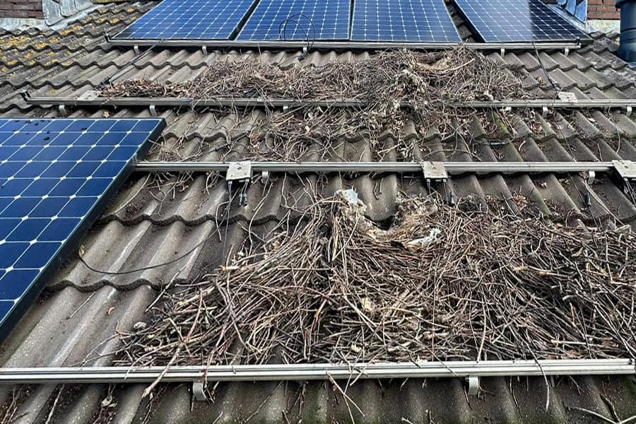 Vogels bouwen nesten met bijvoorbeeld takken, gras, stukjes plastic en papier. Dit kan brandgevaar geven als het in contact komt met de elektrische onderdelen van de zonnepanelen. Het kan ook de ventilatie belemmeren waardoor de temperatuur oploopt.